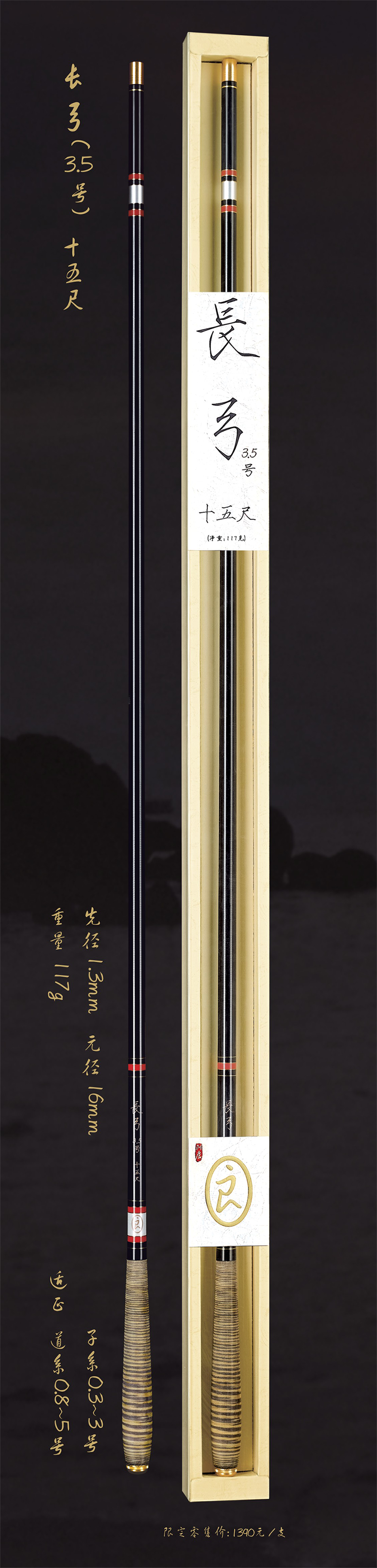 深圳市一良致釣有限公司經(jīng)過(guò)專業(yè)研發(fā),反復(fù)調(diào)試現(xiàn)推出長(zhǎng)弓3.5號(hào)十五尺,長(zhǎng)弓3.5號(hào)十八尺,長(zhǎng)弓4號(hào)十六尺三款新品釣竿。